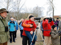 Einblick in die Vielfalt der gefiederten Gäste aus dem hohen Norden bot Vogelkundler Klaus Mathes (links) bei einer Exkursion. Foto: Roland Vitt