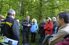 Naturschutzwarte besichtigen Biotope, eine Hirschkäferburg und ein Schwalbenhaus / Ersatz für Eschenbestand entwickelt sich.